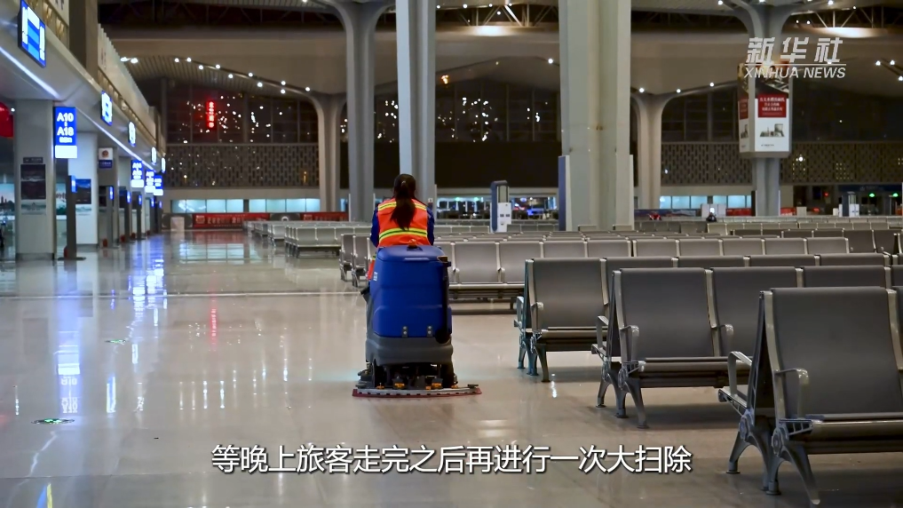 从前一天深夜的最后一趟列车安全抵达开始,赵杨和同事们迎来了一天中最忙碌的时刻,从巡视候车室、清理地面,到检查供暖、供水、照明及闸机显示屏,每一个细节都不放过。