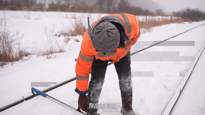 李海他们都要把线路上的积雪清理到线路下