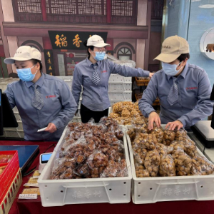 隆福寺街区北京稻香村零号店店长曹思源告诉记者:“节日期间客流量是平日的两到三倍,最多的时候,这三种年味小食一天销售三吨左右。”