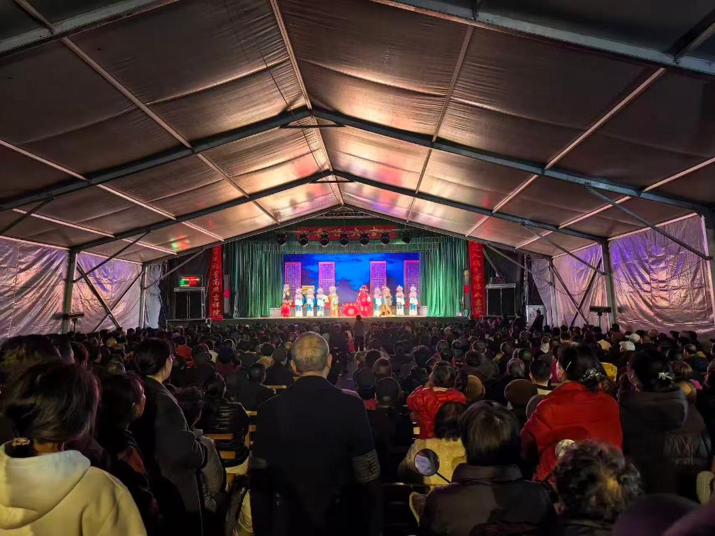 图为2月21日晚上浙江省义乌市王高畈村的婺剧演出现场。(受访者供图)