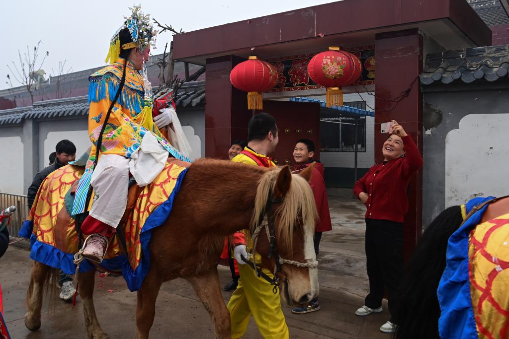 村里人喜欢看,游客也赞不绝口。演出当天,来自西安、北京、甘肃、浙江等地的游客源源不断涌入黄花峪村,驻足欣赏马社火。游客兰发发正月初九就抵达陇县,她一路跟着巡游队伍,“太精彩了,现在参加表演的年轻人也越来越多,是看得见的传承!”