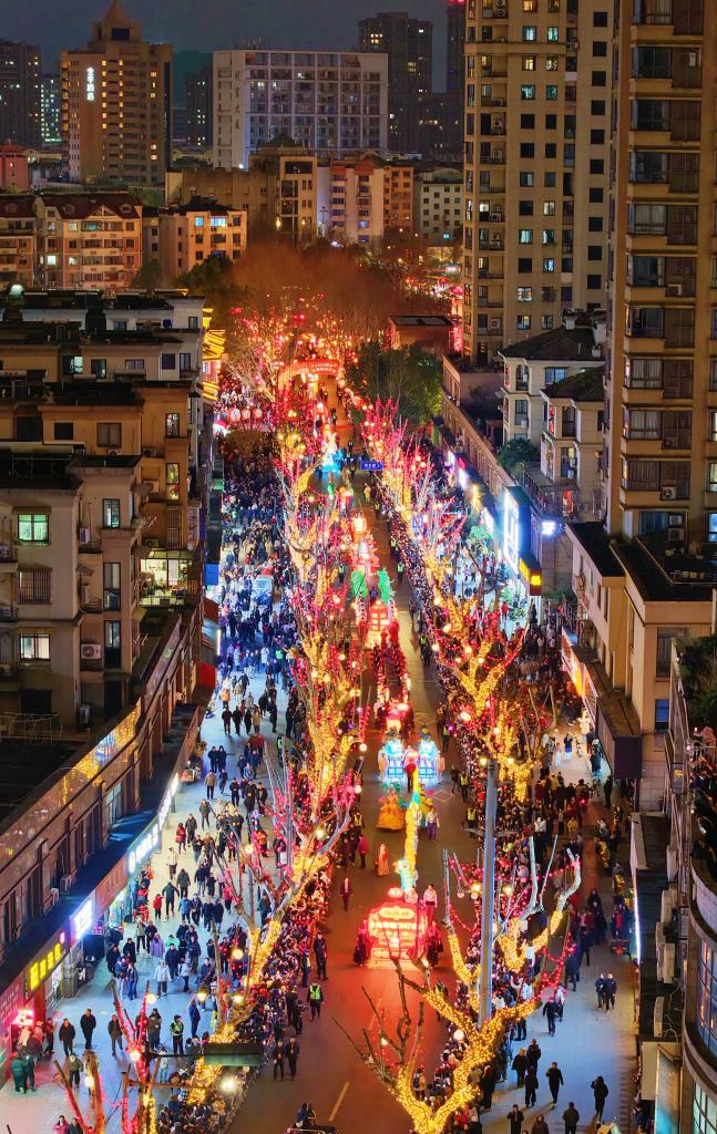 硖石灯会上的巡游队伍从海宁的南关厢蜿蜒而出。新华社发