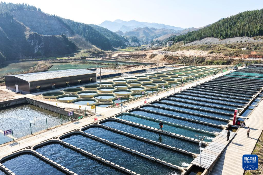 这是3月10日拍摄的贵州省岑巩县淡水渔业基地养殖场景(无人机照片)。