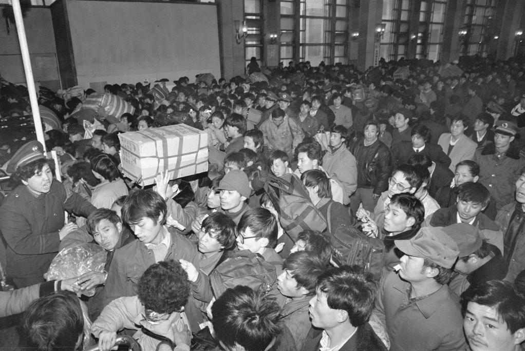 1995年春运期间,在广州火车站,来自四川的“打工妹”赶早乘火车准备回家过年。新华社记者 陈学思 摄