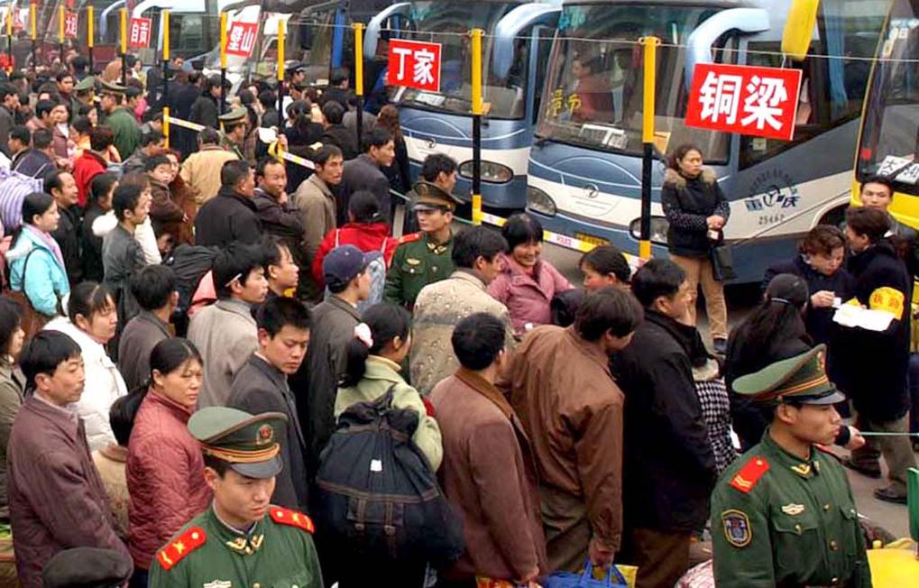2005年2月4日,返乡乘客在重庆汽车站候车。新华社记者 刘潺 摄