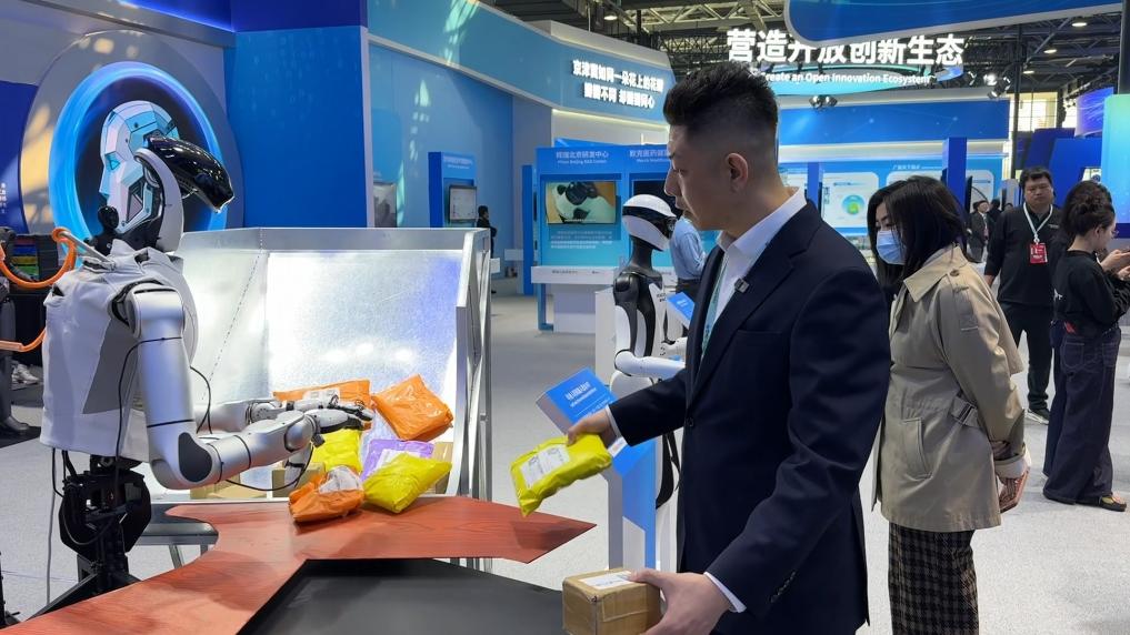具身智能是近段时间以来人们关注的热点,现场展览中越来越多的企业正在让具身智能创新成果不断走向实际应用场景。