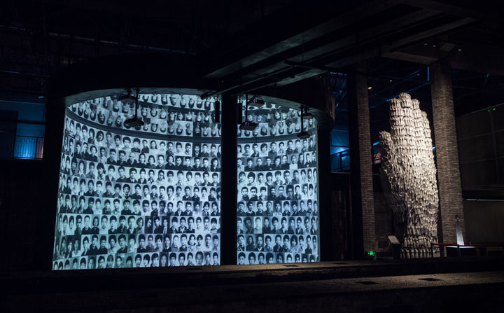 景德镇陶瓷工业遗产博物馆内的照片墙,一侧是一面巨型手模墙。(受访单位供图)