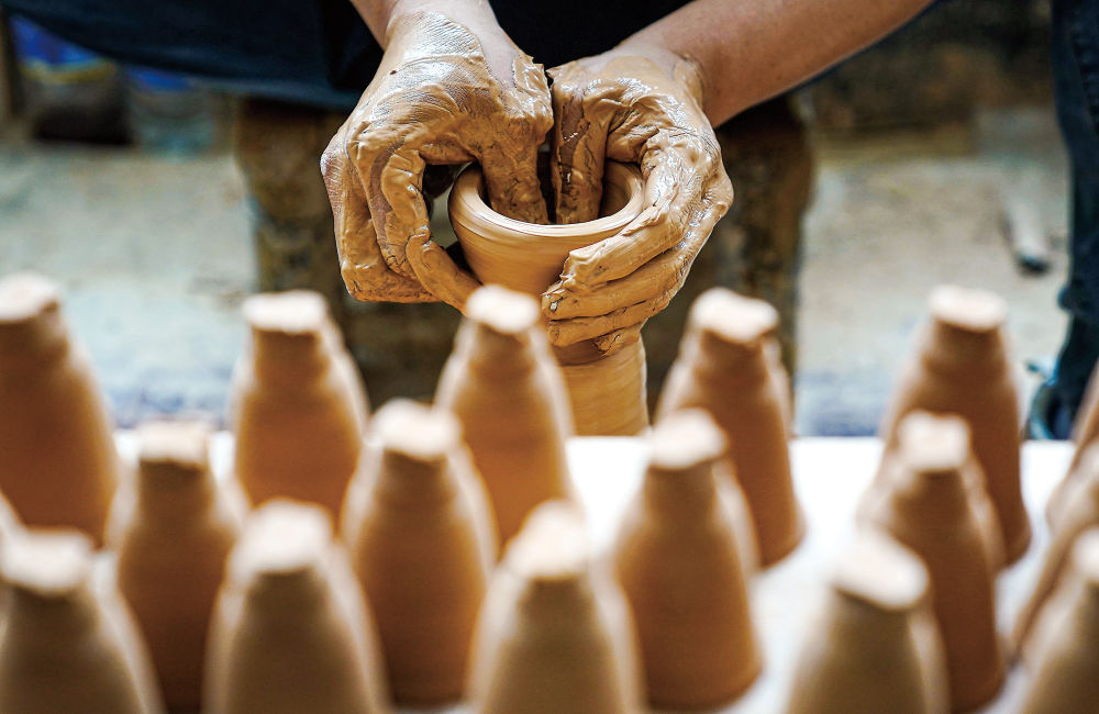 那是一家制瓷工坊,游人在此体验用双手驯服泥土的快乐。湿泥在掌心旋转、成型,你稍稍走神迟疑,它就塌陷走形。拉坯师傅在一旁提醒:心要定、手要稳。