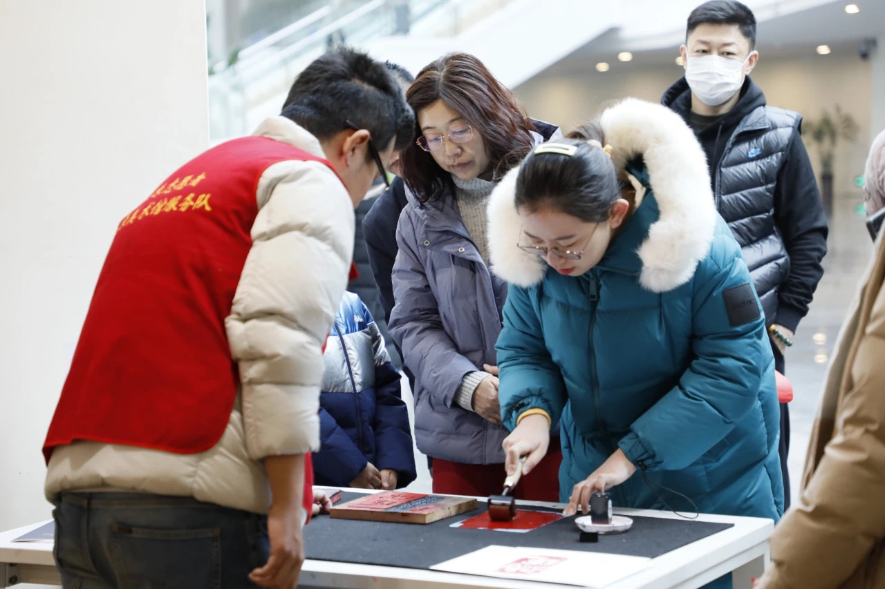 新春假期,游客在太原美术馆“年自万物生”——2025山西非遗年俗艺术展现场参与体验活动。(太原美术馆供图)