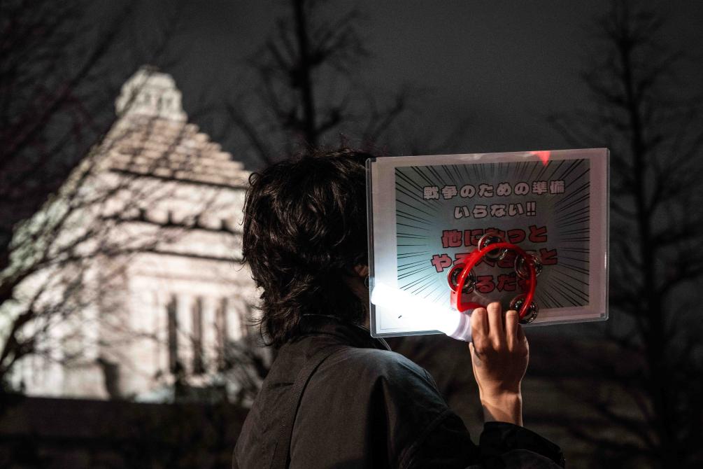 2月24日,大批日本民众在东京众议院第二议员会馆前举行集会,抗议首相高市早苗近期推动加速修宪、扩充军备、强化国家情报能力等政策。新华社记者贾浩成摄