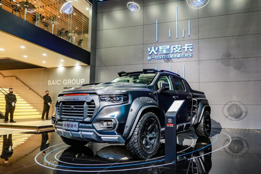 开幕首日,北汽福田新一代全尺寸硬派豪华火星皮卡全球首发并开启预售。作为新时代皮卡市场的代表性产品,火星皮卡车宽近2.1米,诞生于国内首个全尺寸皮卡开发平台,搭载全球首款48V柴油混合动力,百公里油耗低至6.8L。