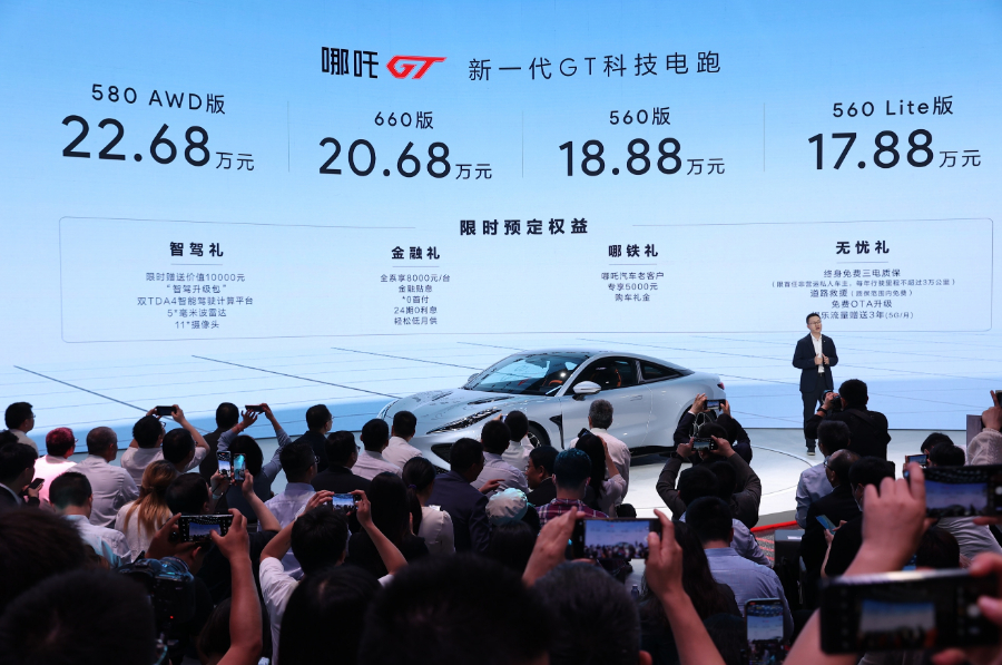 4月18日,第二十届上海国际汽车工业博览会(以下简称“上海车展”)在国家会展中心拉开帷幕。车展上,哪吒汽车举办了“开启跑车新纪元”哪吒GT上市发布会,旗下首款纯电跑车哪吒GT正式上市,上市车型包括560 Lite版、560版、660版和580 AWD版,官方指导售价为17.88-22.68万元。发布会上,哪吒汽车联合创始人、CEO张勇公布了哪吒GT限时购车权益——5月31日前,在哪吒汽车APP等官方平台下定哪吒GT,即可享受:价值10000元的“智驾升级包”,8000元/台金融贴息,以及包括终身免费三电质保、免费OTA升级等在内的多重福利。此外,对于一直支持哪吒汽车发展的车主,哪吒汽车将额外提供5000元购车礼金。