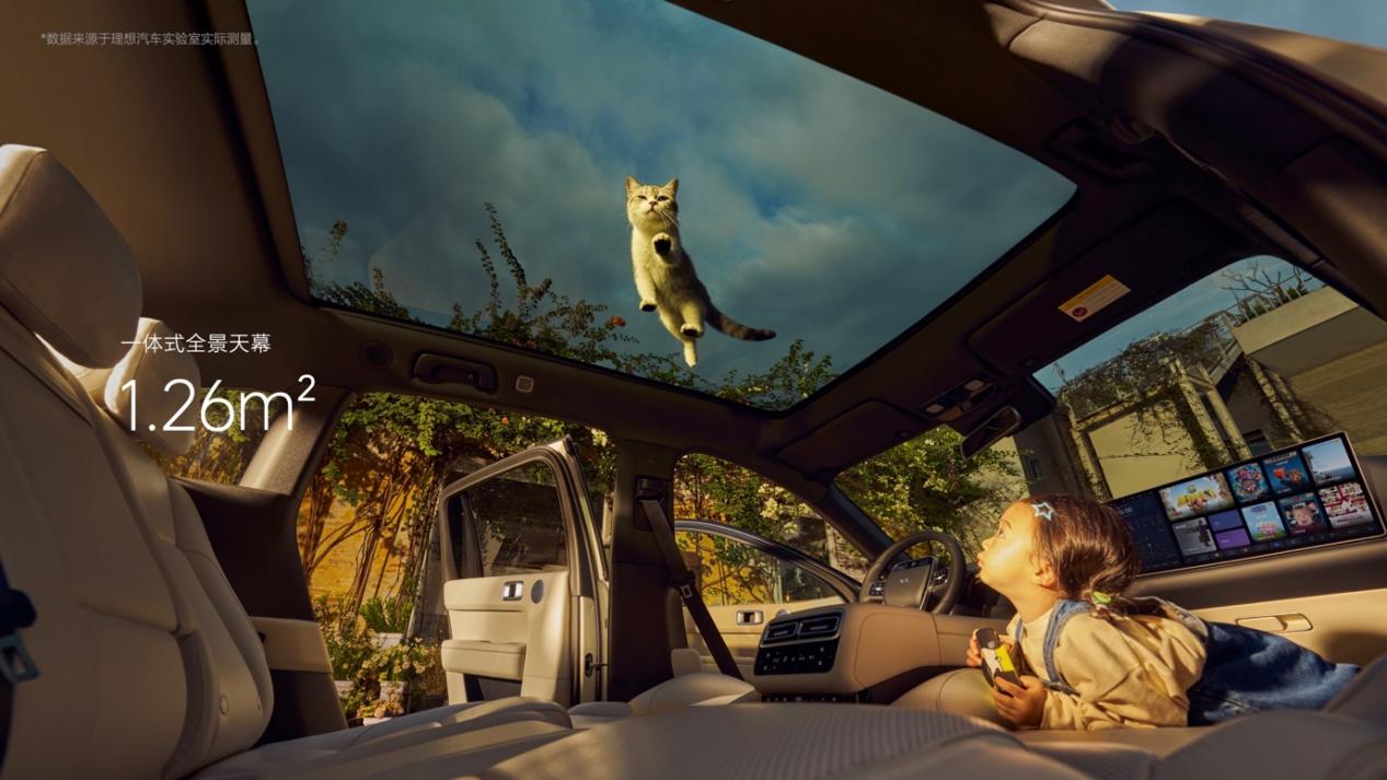 理想L6还配备带电动遮阳帘的全景天幕,1.26平方米一体式全景天幕,提供极佳的观景视野和通透性。天幕玻璃以及前风挡和侧窗玻璃可有效隔绝99.8%的紫外线,电动遮阳帘可高效隔热,在夏季38°C暴晒1小时的场景模拟试验中,比没有遮阳帘的车型车内温度低14°C。理想L6前风挡、侧窗和全景天幕都采用了双层隔音玻璃,搭配静音胎,有效确保车内静谧性。
