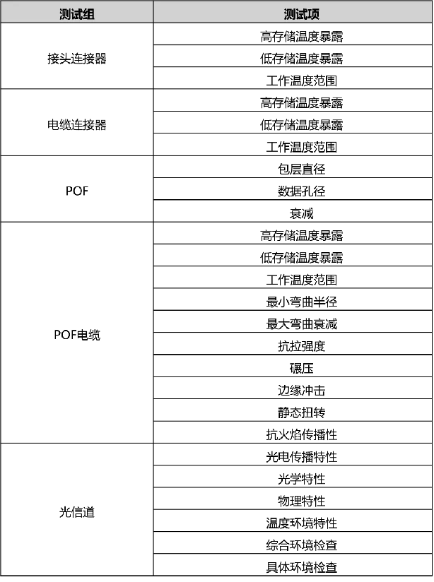 ISO21111-4标准介绍了1Gbit/s传输速率下光纤以太网组件(例如1000BASE-RHC组件)构成,描述了接头连接器和电缆连接器的尺寸标准、机械编码和电缆接头的通用要求,提供了POF与POF电缆的相关规定。技术人员可参考上述规定进行用于1-Git/s传输速率的车载以太网部件的研发工作。