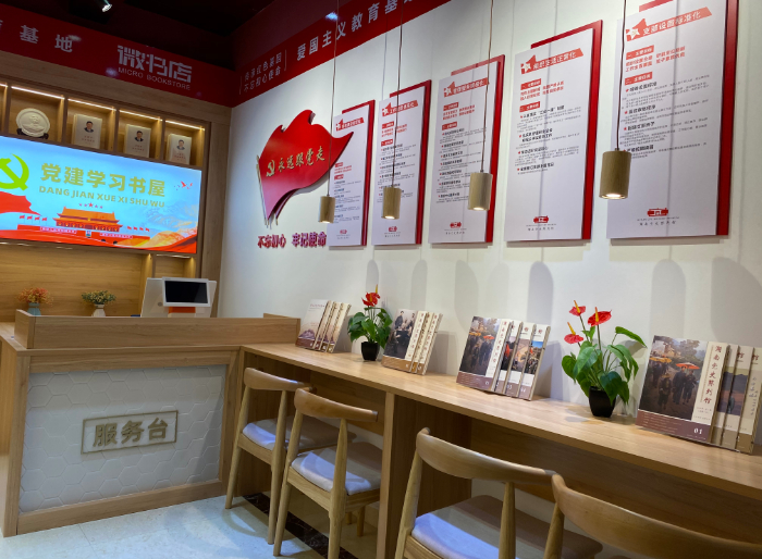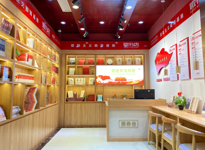 湖南党史陈列馆(以下简称“党史馆”)坐落历史名城长沙,于2014年9月30日正式对外开放。党史馆红色书屋建设面积约25平方米,建设金额约20万元,藏书约5万多册,于2020年4月正式对外开放。党史馆红色书屋作为省级爱国主义教育基地微书店,以红色文化为设计主题,党史学习书籍丰富、党建学习标识醒目、党建学习氛围浓厚;并设有专门的读者阅读区,环境舒适、设施完善、功能齐全,是全省党员开展革命传统教育、爱国主义教育和社会主义核心价值观教育的又一新课堂和新阵地。党史馆红色书屋由党史馆内设机构文创部负责具体运营管理,制定了详细的管理制度,配有专业的管理团队,运营管理规范有序。