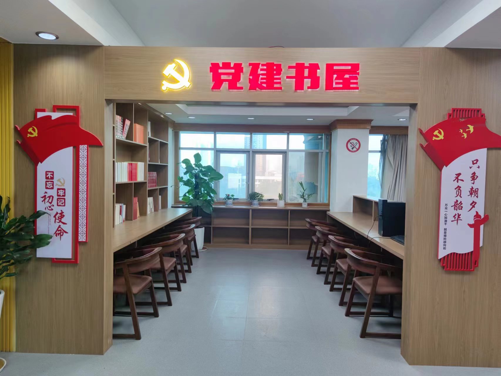 益阳市中院党建书屋总建筑面积约280平,建设金额20余万,包含红色党建主题文化学习区、干部职工阅读活动区、廉政文化党建文化展示区、藏书区和休闲水吧服务区,馆内共配置各类书籍四千余册,范围涵盖党史文化、廉政文化、传统文化、法学专业、少儿文学和生活艺术等众多类别。并设有智能设备,可通过线上线下进行阅读,为我院干警提供了优渥的读书条件,营造了浓厚的读书氛围,是打造我院“书香型机关 学习型法院”的有力支撑。