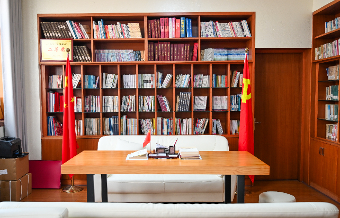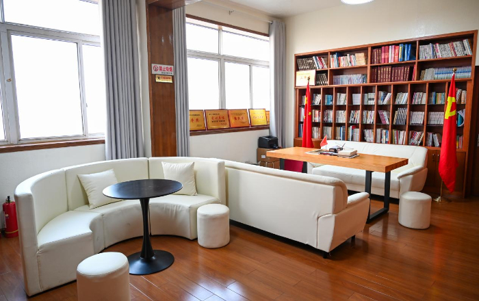娄底市总工会“党建学习书屋”位于娄底市长青街东125号工会大厦七楼,始建于2021年8月,于2023年11月升级改造,总投资35万余元,占地80平米,共计藏书2万余册。图书种类包括党史、政治、文学、历史、宗教、法律等方面,书屋配备了书架、桌椅、电脑、空调、投影仪、电子屏、饮水机等设施,确保干部职工有一个安静舒适的读书环境。