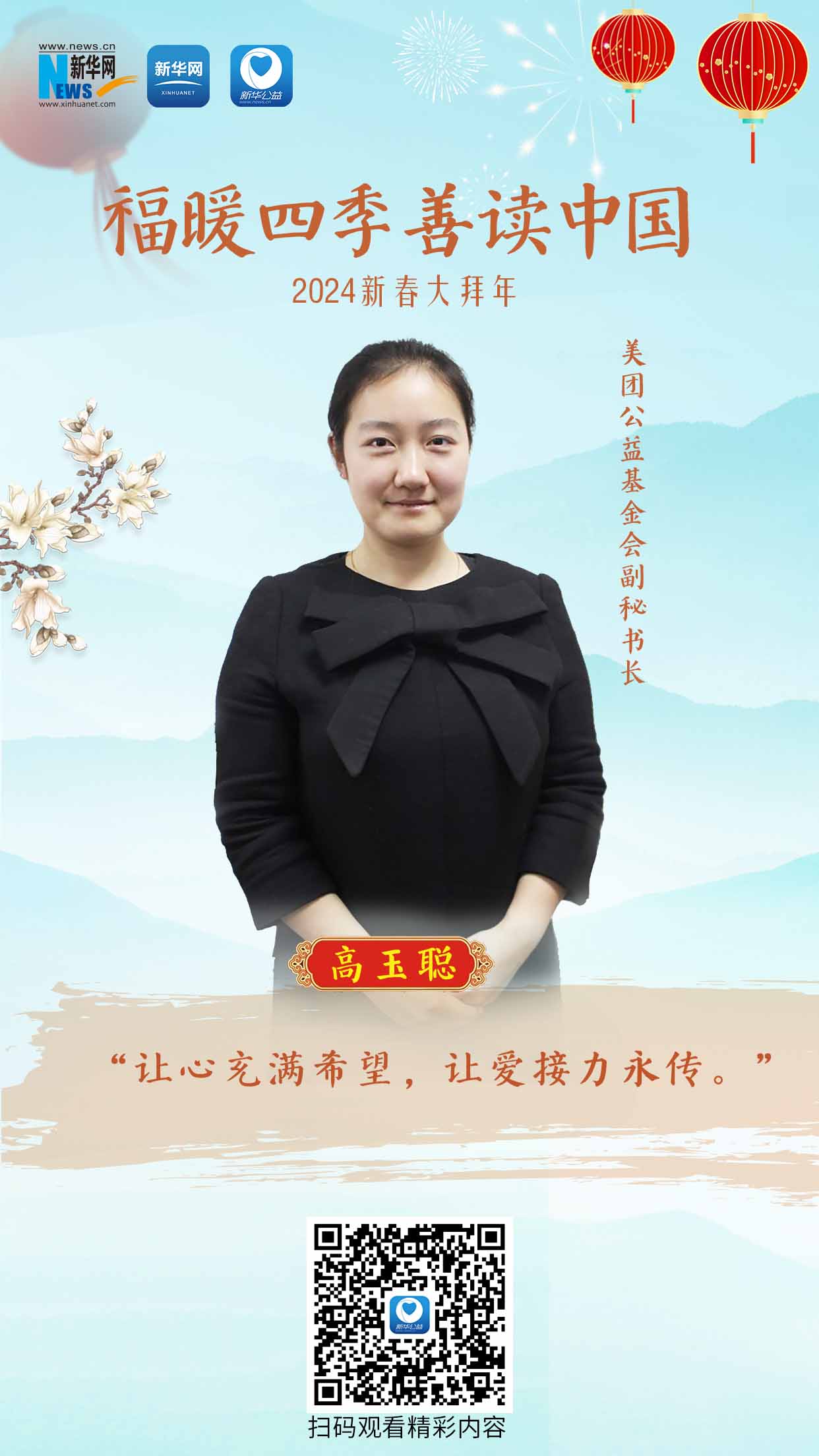 玉兔辞旧,龙腾盛世。新春佳节到来之际,美团公益基金会副秘书长高玉聪祝大家龙年行大运,好运迎新春,新的一年里,我们爱心接力,慈善奉献之心不停息,让心充满希望,让爱接力永传。