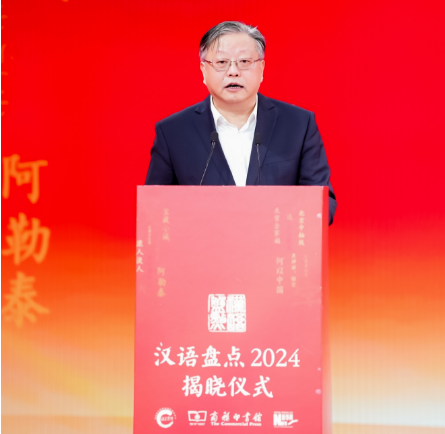 商务印书馆党委书记、执行董事顾青在“汉语盘点2024”年度字词揭晓仪式上致辞。新华网 发