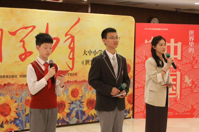 大中小学生共读《世界里的中国》活动现场。(主办方供图)中宣部主题出版重点出版物《世界里的中国》已由中国少年儿童新闻出版总社中国少年儿童出版社和江苏人民出版社联合出版。本书从世界视角切入,梳理了中华文明和中华民族历史发展逻辑,阐发了中国道路的自信与活力。