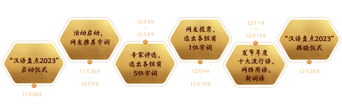 12月9日,“漢語盤點2023”活動發布“年度字詞”評選各組前五位年度候選字和前五位年度候選詞。[詳情]