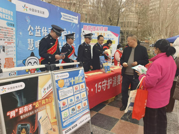 为切实维护广大消费者合法权益,全面普及防范电信网络诈骗、涉彩诈骗安全知识,积极引导群众远离非法彩票、树立健康理性购彩理念,3月15日,新疆体彩阿克苏分中心联合阿克苏地区文化体育广播电视和旅游局、阿克苏地区市场监督管理局、阿克苏地区公安局,共同举办以“公益体彩守护幸福 慧眼识诈共筑平安”为主题的消费者权益保护暨防范诈骗集中宣传活动。
