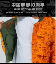 这款舰载飞行十周年飞行夹克不仅是一件时尚单品,更是一款具有文化内涵的纪念品。它代表着中国舰载飞行事业的辉煌历程,是舰载飞行员荣誉与梦想的象征。穿上这款夹克,不仅能展现出个人的时尚品味,更能彰显出对舰载飞行事业的热爱与敬意。