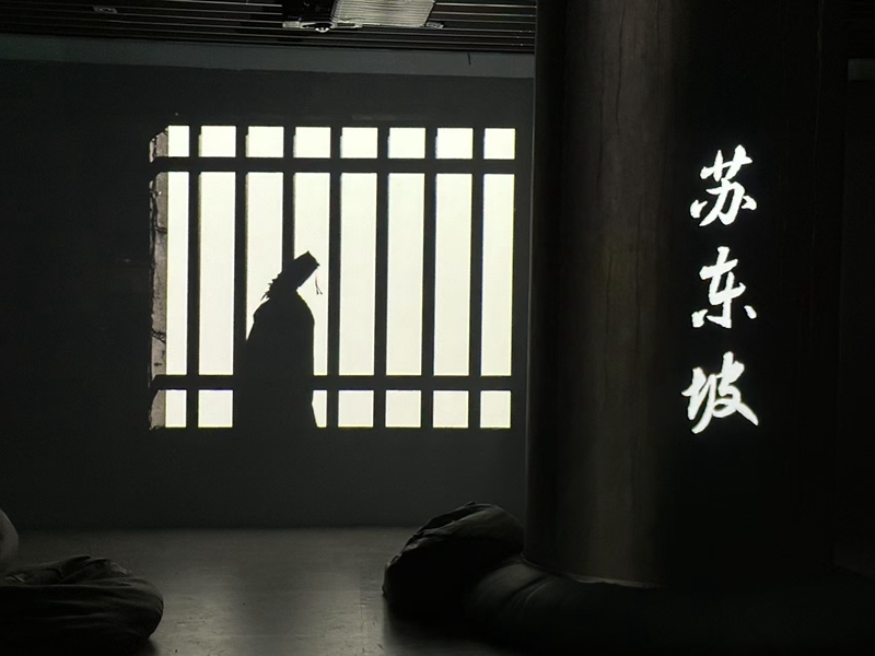 展览区内最为热闹的一幕,莫过于游客们纷纷模拟苏轼敲门,这是网络热梗“怀民亦未寝”的再现。高颖介绍说,“观众可以通过声音互动‘叫醒’怀民,怀民在室内点亮灯,并‘睡眼惺忪’地‘回应’,让观众以更真实、更可感的方式去感受到当时的场景。”
