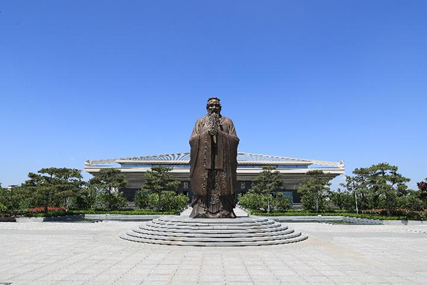 孔子博物館外巨大的孔子塑像。 受訪者供圖
