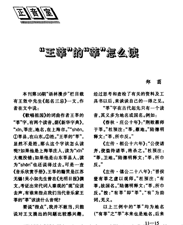 如果這個字用作人名怎么讀?比如《歌唱祖國》的詞曲作者“王莘”的“莘”。