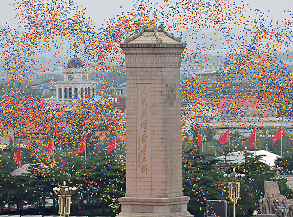 7月1日上午,慶祝中國共產黨成立100周年大會在北京天安門廣場隆重舉行。這是慶祝大會現場放飛氣球。新華社記者 李響 攝