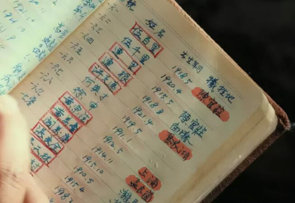 已經(jīng)在戰(zhàn)場犧牲的人,他會用紅色筆畫上一個圈,比如他的哥哥伍百里;新加入的戰(zhàn)士,則記下他們的編號和名字,比如他的弟弟伍萬里。