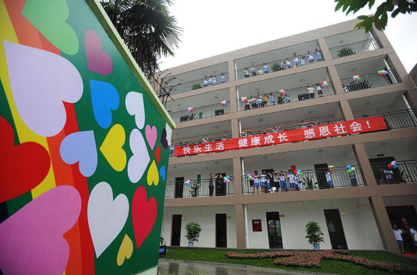 2009年8月26日,當時全國最大的集中安置四川地震災區孤困兒童基地——雙流“安康家園”、新棠湖小學等落成。這是新華社記者江宏景在新棠湖小學宿舍區拍攝的一張現場照片。