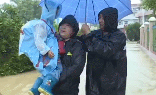 持续强降水,导致浙江省衢州常山县青石镇辖区内多条道路积水成河,地处低洼区的幼儿园上学路被洪水淹没,村党员干部两人一组,一个撑伞、一人抱起学生,用身体筑起渡“河”的“船”,将194名学生安全护送回家。
