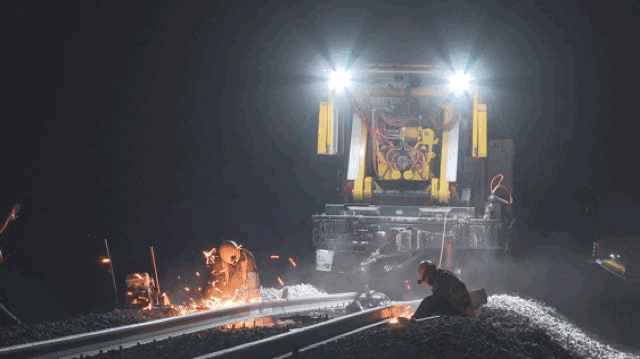 但无缝钢轨焊接施工对控温要求极高,建设者们只能趁着夜晚气温下降时作业,在工地上度过一个又一个不眠之夜。
