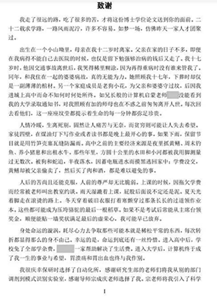 去年,中科院毕业生黄国平的博士论文致谢,在社交平台上走红。