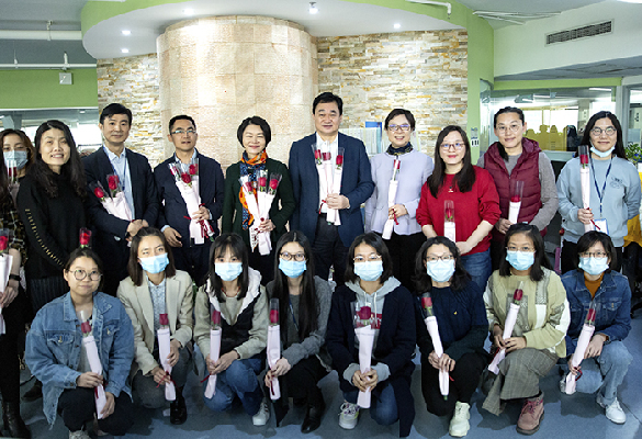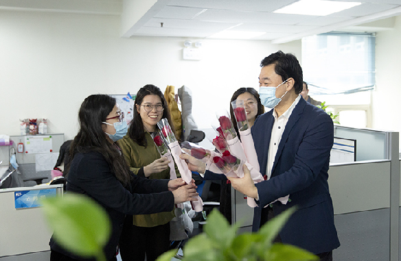 ? 3月8日,舒斌、姍娜同志等公司領導,及工會、婦委會向公司女員工送上鮮花等慰問品,向大家致以節日問候。