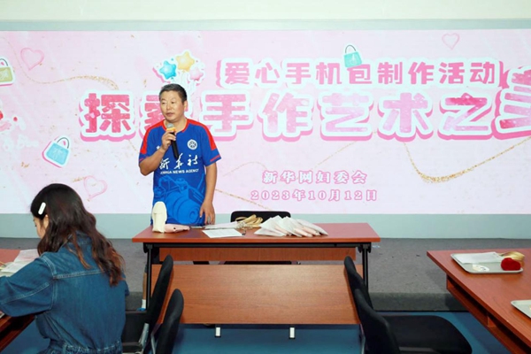 10月12日,新華網(wǎng)婦委會舉辦“探索手作藝術(shù)之美——愛心手機包制作”活動。參與員工在領(lǐng)略中國傳統(tǒng)手工制作的藝術(shù)之美同時,也緩解工作和精神壓力。手作藝術(shù)是中國文化的重要組成部分,所制作的工藝品不僅具有欣賞價值,也成為女職工們的實用貼心物品。