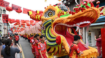 中国戏剧梅花奖获得者陈琼(前)和闽剧演员邓振辉(后)在《梅玉配》选段的表演中(2月5日摄)。