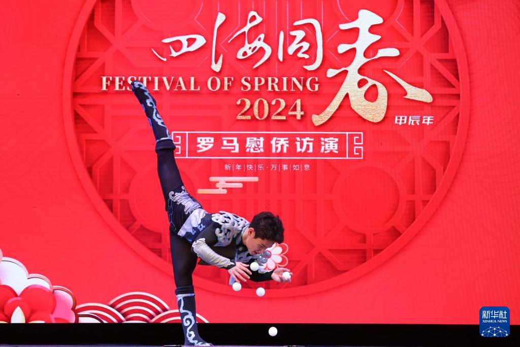 “四海同春”慰侨访演活动19日在意大利罗马举行。演出以歌曲、器乐、杂技等多元艺术形式,呈现出一场极具中国韵味和春节喜气的文化大餐。