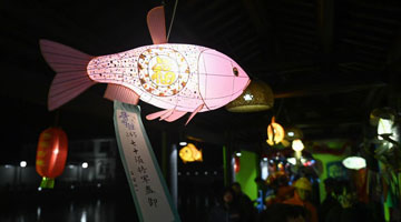 2月21日,海南定安县后山村的村民在村口观看琼剧。