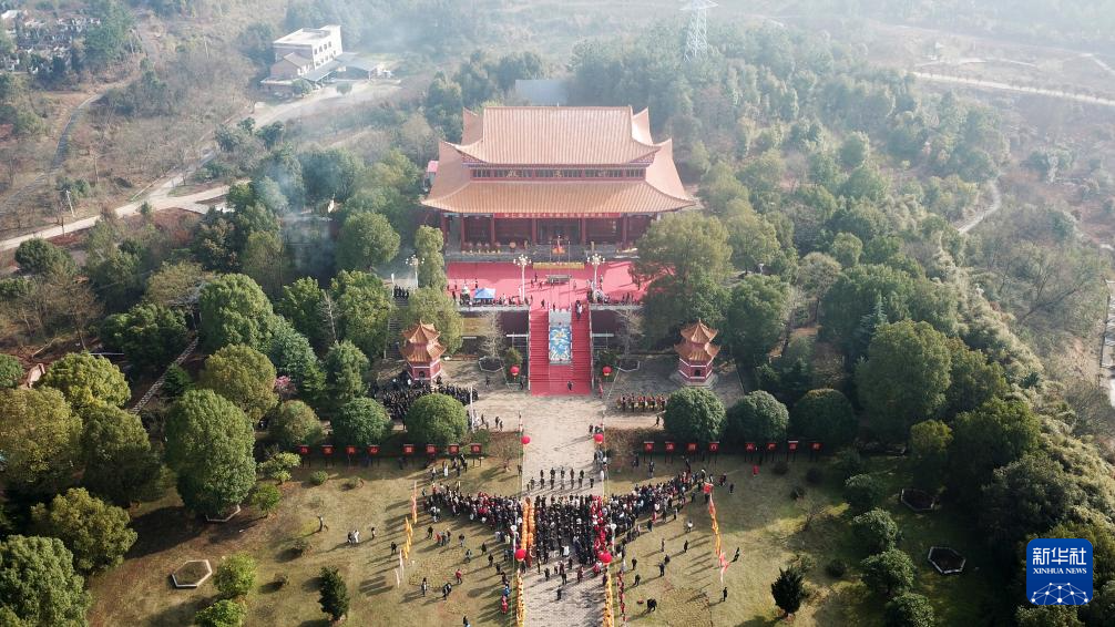 这是3月20日拍摄的安仁县2024年祭祀炎帝神农典礼现场(无人机照片)。