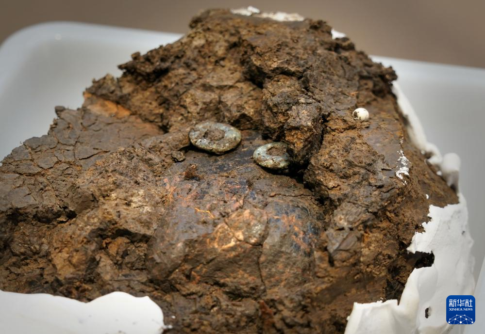 这是王庄遗址出土的玉覆面组件(1月30日摄)。