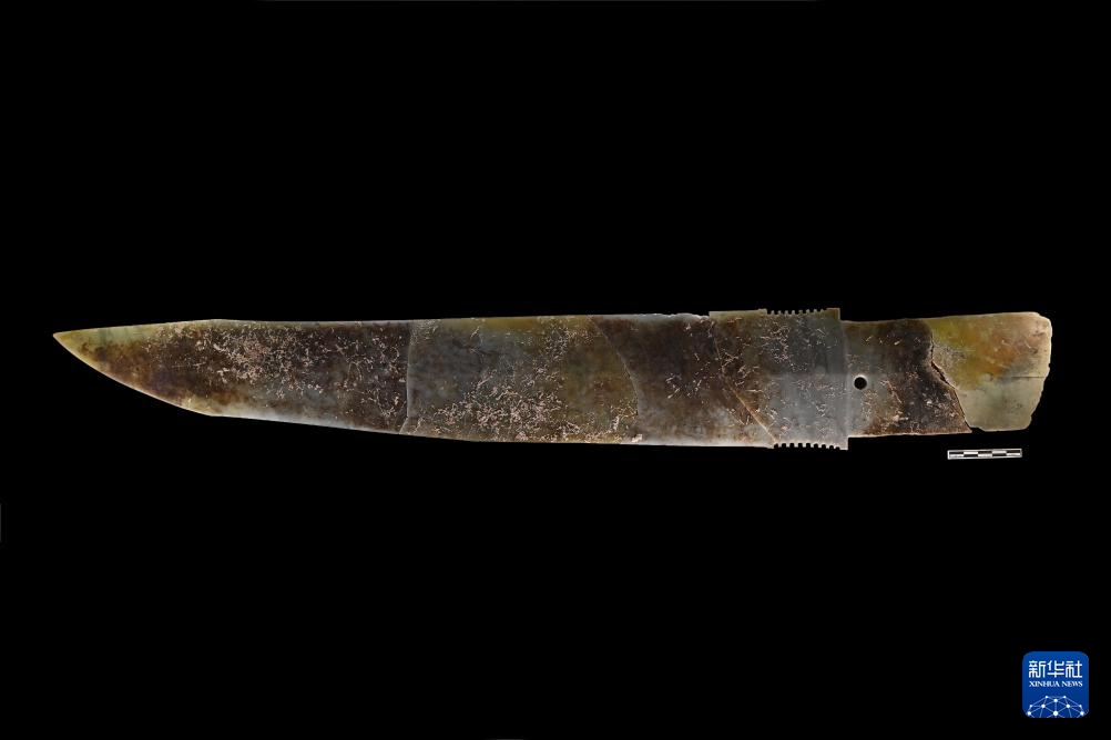 这是郑州商都书院街墓地M2墓葬中出土的玉戈(资料照片)。