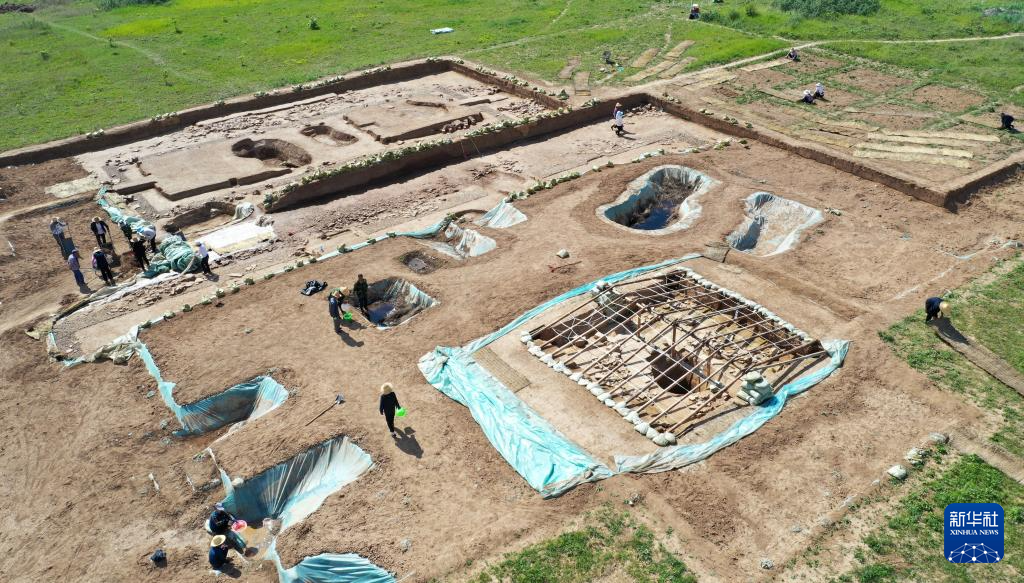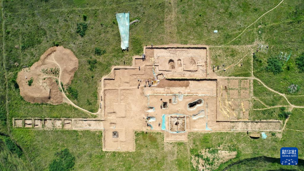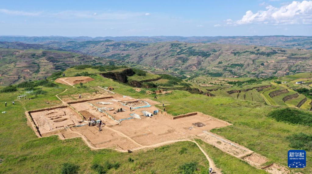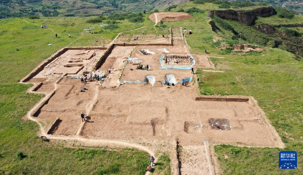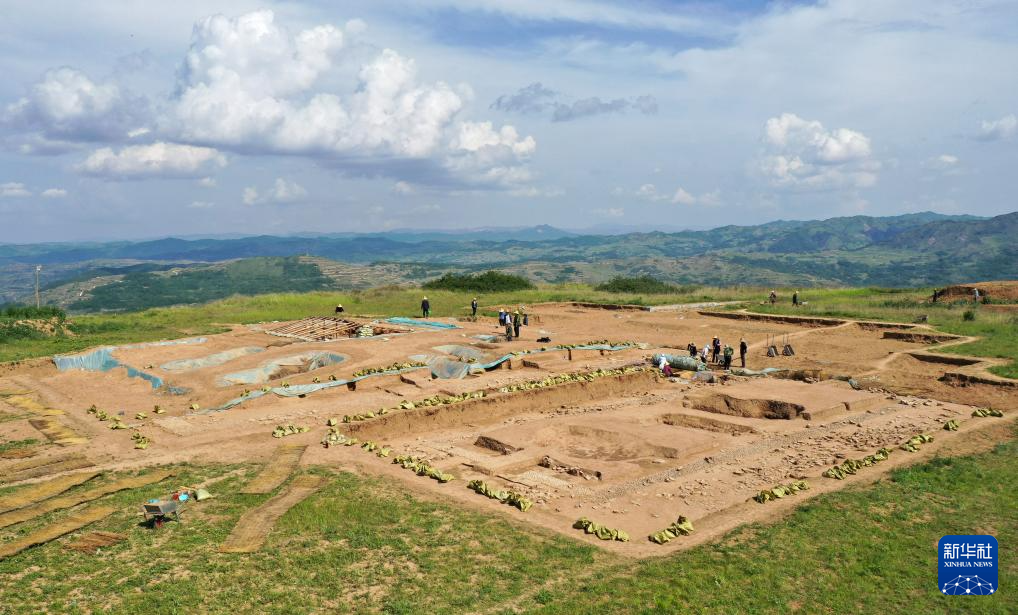 这是2022年6月10日拍摄的甘肃省陇南市礼县四角坪遗址考古发掘现场(无人机照片)。
