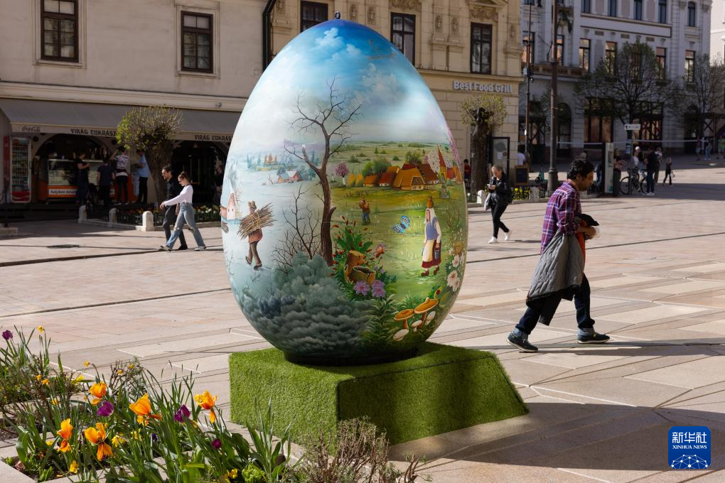 这是3月30日在匈牙利南部城市佩奇街头拍摄的复活节巨型彩蛋。新华社发(弗尔季·奥蒂洛摄)