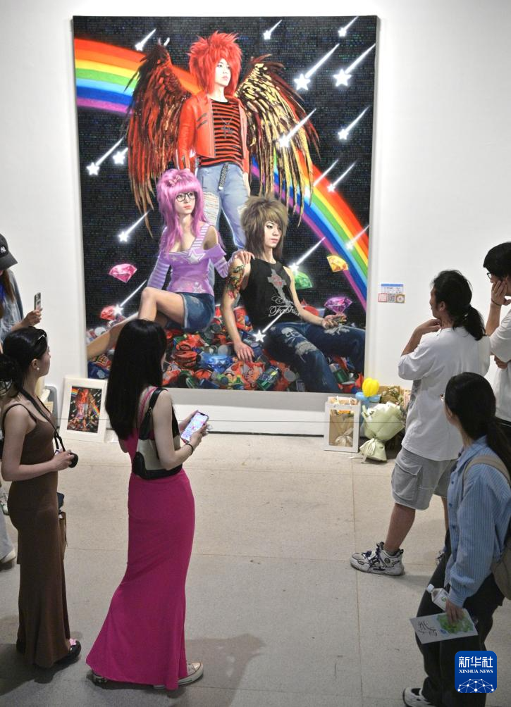 5月13日,参观者在中央美术学院美术馆参观壁画系毕业生作品。