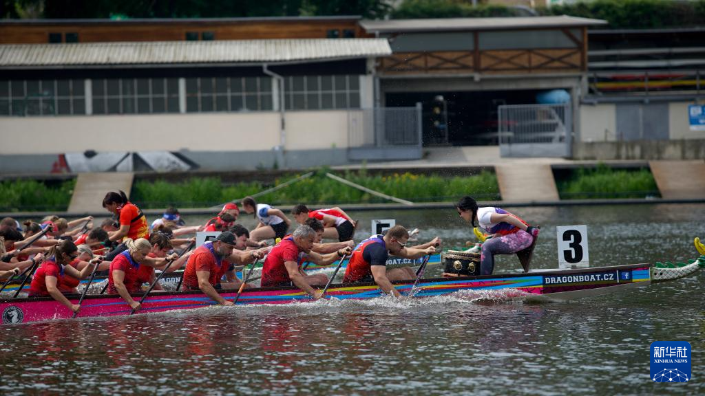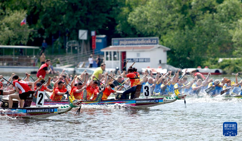5月11日,人们在捷克首都布拉格举行的第27届布拉格龙舟节上赛龙舟。