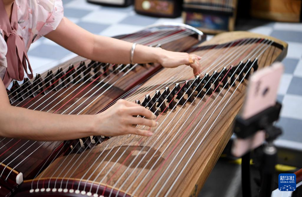 5月13日,河南省兰考县堌阳镇的斫琴师徐冰通过网络直播售卖古琴。