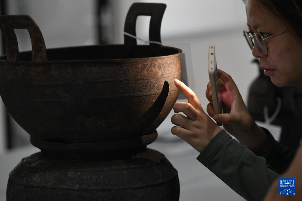 5月20日,考古人员在武王墩考古实验室观看文物细节。